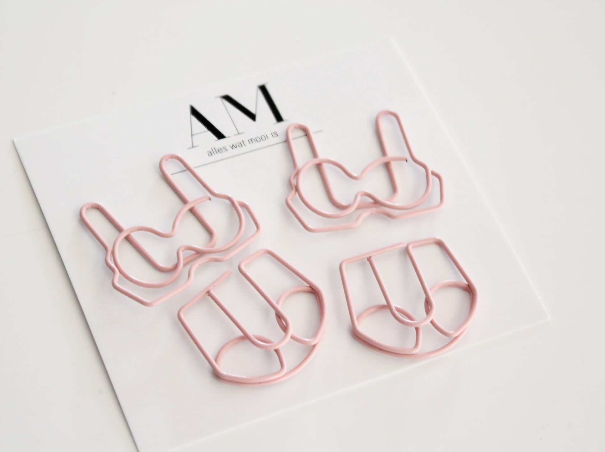 Add a cheeky touch to your stationery with these Blush Pink Lingerie Paper Clips! Shaped like cute bras and panties, these playful clips keep your papers together with a hint of fun and flirtiness. Perfect for planners, journals, or office work with personality, each clip is made of durable metal and coated in a soft blush pink finish. Keep your documents organized — and your mood lifted — with these adorable undergarment-inspired clips!